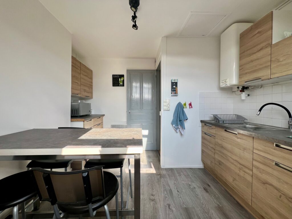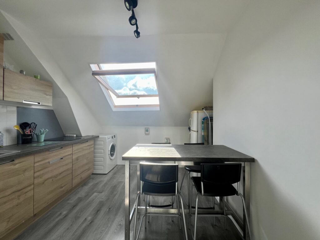- une cuisine équipé et aménagée avec machine à laver