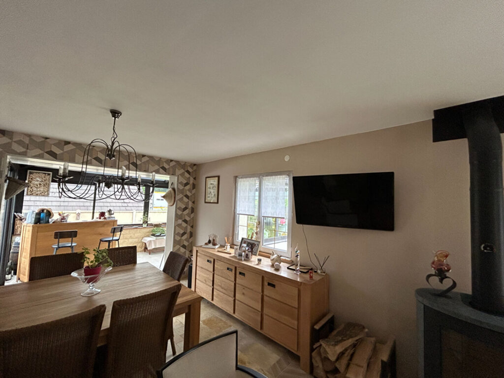 Celle ci ce compose:- pièce de vie avec veranda de 48 M² poêle à bois avec terrasse plein sud pour prendre le soleil ,